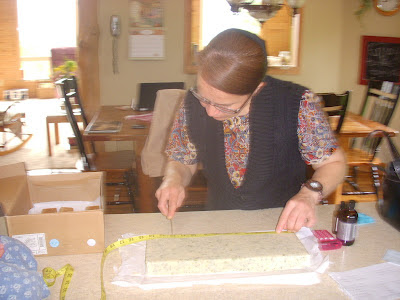 Two days later, I went back for a lesson in cutting it up. Soap like this needs a couple days to set up.